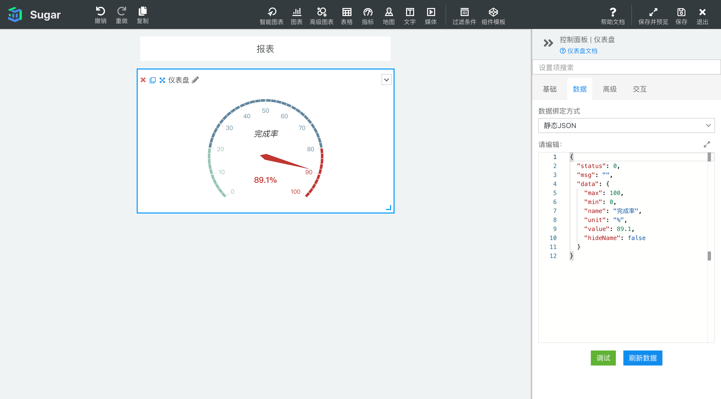 在「基础」控制面板中,仪表盘的自定义配色可以给仪表盘划分多个区段,设置每个区段的占比,并且设置区段的颜色,从而可以满足各种定制化的展示需求: