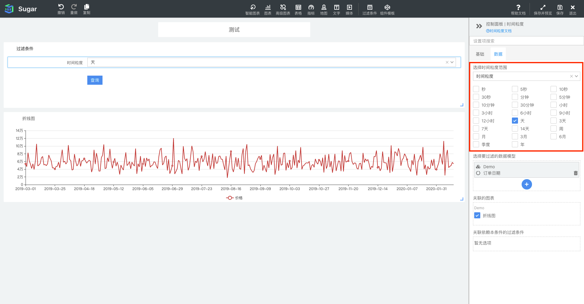 通过内置时间粒度,通过勾选选择需要的时间粒度: