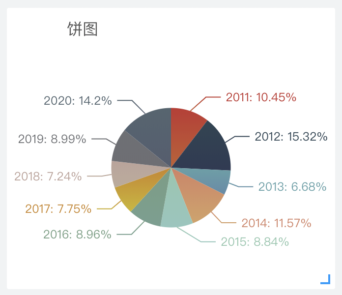 按照上面的流程,我们即可将 API 数据中year、cost字段绑定到了饼图上进行展示,效果如下: