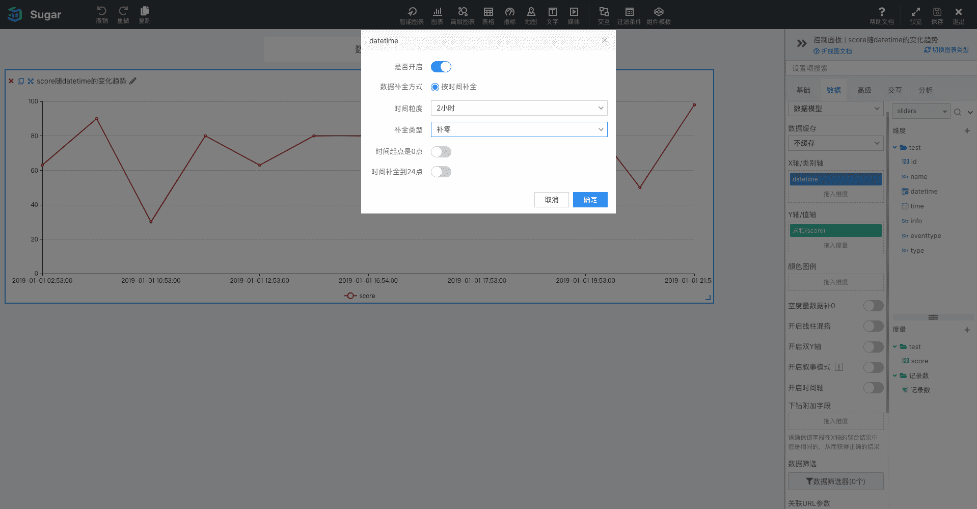 需要注意的是,按日期补全需要图表绑定的字段中有日期类型的字段。