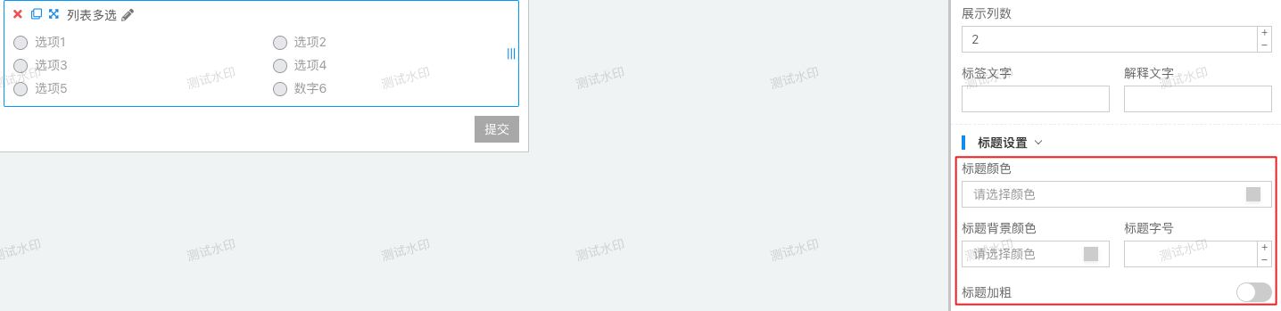 表单项的标题支持设置颜色、背景色、字体大小以及是否加粗: